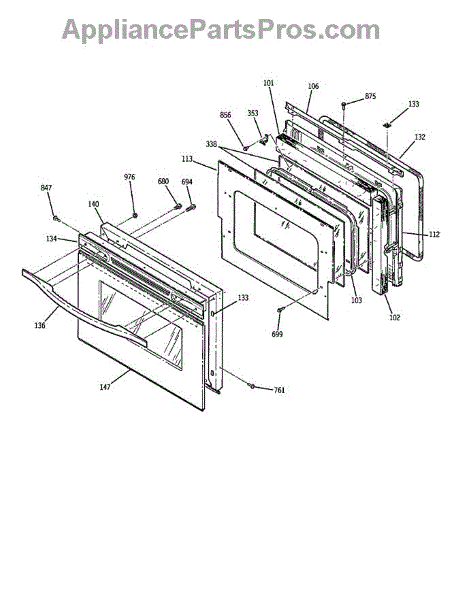 Parts for Ge JS966SD1SS: Oven Door Parts