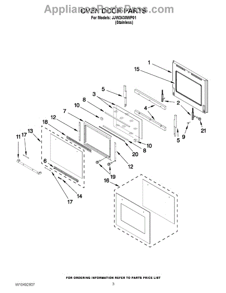 This oven outer door is a vital component for the appliance to power on and perform cook functions. If the oven door becomes damaged the appliance may not power on or heat efficiently. A crack in the glass or any warping or bending of the door will not hold in heat, and some ovens won't even power on if the door is compromised in any way. A replacement door should be ordered in this situation. When installing a new door or any other large part, two people should be used to avoid damage. On the original appliance, there should be holes for screws on the sides of the hinges that attach to the new door.This Whirlpool oven outer door is a genuine OEM replacement part sourced directly from Whirlpool. The product listed is not included with any other components or the original appliance. This product is compatible with Whirlpool, KitchenAid, Maytag, and JennAir products.