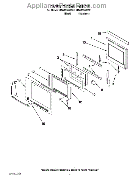 Replacement door handle for microwave ovens. Restores secure grip when original handle is cracked, broken, or loose. Mounts to exterior door panel.