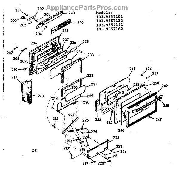 Parts for Kenmore 103.9357162 (1039357162, 103 9357162): Oven Door Parts