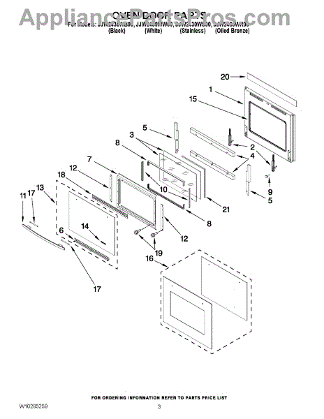 This oven outer door is a vital component for the appliance to power on and perform cook functions. If the oven door becomes damaged the appliance may not power on or heat efficiently. A crack in the glass or any warping or bending of the door will not hold in heat, and some ovens won't even power on if the door is compromised in any way. A replacement door should be ordered in this situation. When installing a new door or any other large part, two people should be used to avoid damage. On the original appliance, there should be holes for screws on the sides of the hinges that attach to the new door.This Whirlpool oven outer door is a genuine OEM replacement part sourced directly from Whirlpool. The product listed is not included with any other components or the original appliance. This product is compatible with Whirlpool, KitchenAid, Maytag, and JennAir products.
