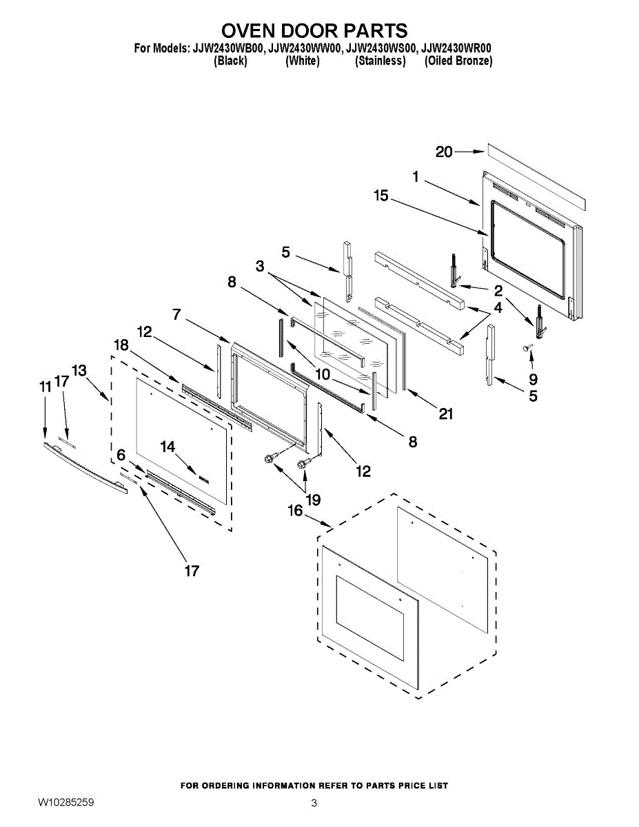 This oven outer door is a vital component for the appliance to power on and perform cook functions. If the oven door becomes damaged the appliance may not power on or heat efficiently. A crack in the glass or any warping or bending of the door will not hold in heat, and some ovens won't even power on if the door is compromised in any way. A replacement door should be ordered in this situation. When installing a new door or any other large part, two people should be used to avoid damage. On the original appliance, there should be holes for screws on the sides of the hinges that attach to the new door.This Whirlpool oven outer door is a genuine OEM replacement part sourced directly from Whirlpool. The product listed is not included with any other components or the original appliance. This product is compatible with Whirlpool, KitchenAid, Maytag, and JennAir products.