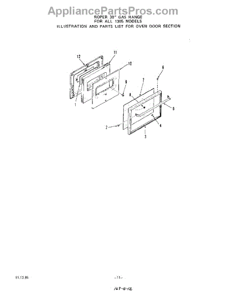 Parts for Roper 1305W1A: 08 - Oven Door Parts