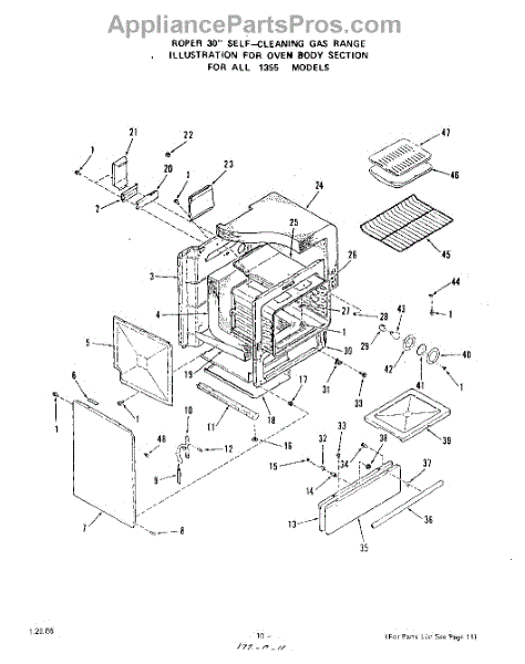 Parts for Roper 1355W1A: 08 - Oven Door Parts
