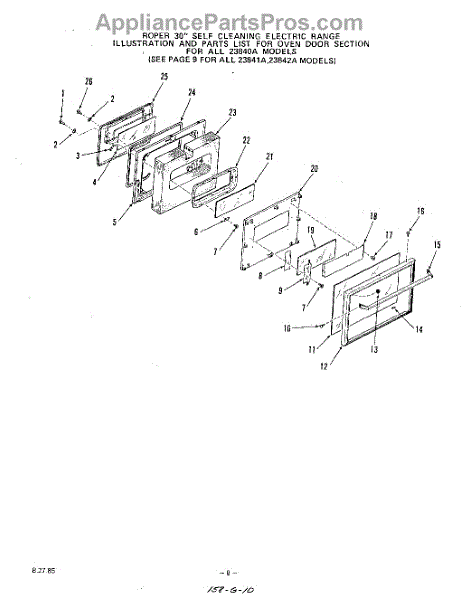 Parts for Roper 2384W1A: 07 - Oven Door Parts
