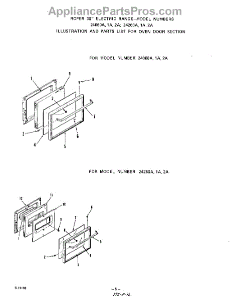 Parts for Roper 2426W1A: 05 - Oven Door Parts