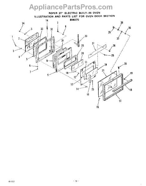 Parts for Roper B9607X0: 05 - Oven Door , Lit / Optional Parts