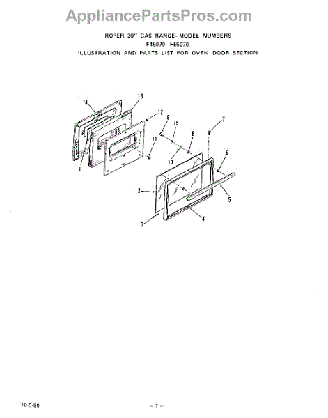 Parts for Roper F4507W0: 06 - Oven Door Parts