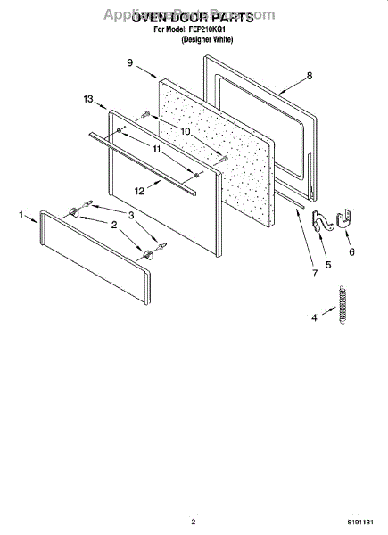 Parts for Roper FEP210KQ1: 02 - Oven Door Parts