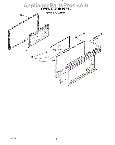Parts for Roper FGP335VW3: 08 - Oven Door, Lit / Optional Parts
