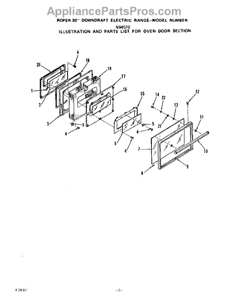Parts for Roper N9457X0: 06 - Oven Door Parts