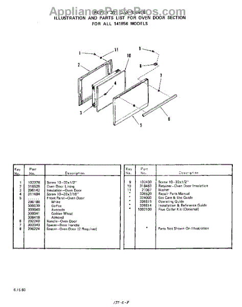 Parts for Whirlpool 1418W56: 08 - Oven Door Parts
