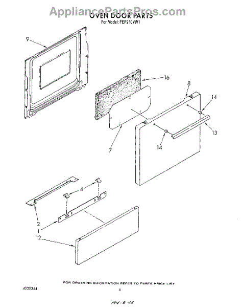 Parts for Whirlpool FEP210VL1: 05 - Oven Door Parts