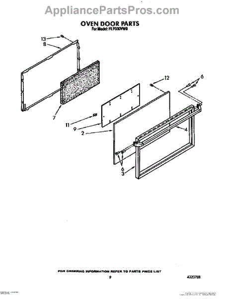 Parts for Whirlpool FLP330VL0: 08 - Oven Door Parts
