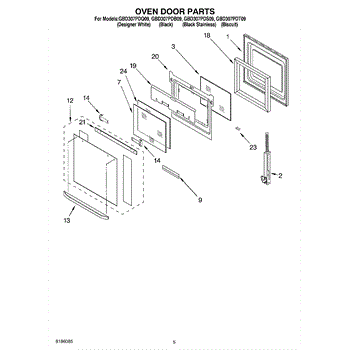 Parts for Whirlpool GBD307PDQ09: 03 - Oven Door Parts