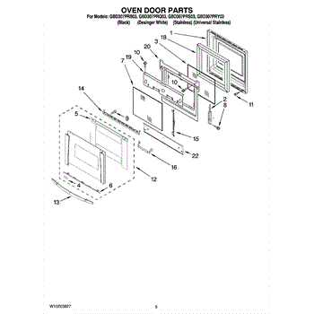 Parts for Whirlpool GBD307PRY03: 03 - Oven Door Parts