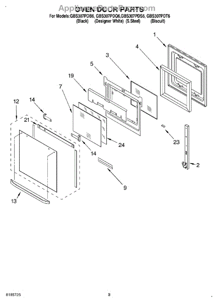 Parts for Whirlpool GBS307PDQ6: 02 - Oven Door Parts