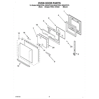Parts for Whirlpool GBS307PDS6: 02 - Oven Door Parts