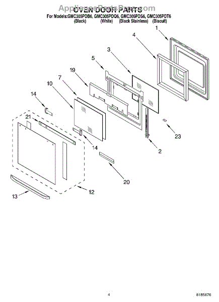 Parts for Whirlpool GMC305PDS6: 03 - Oven Door Parts