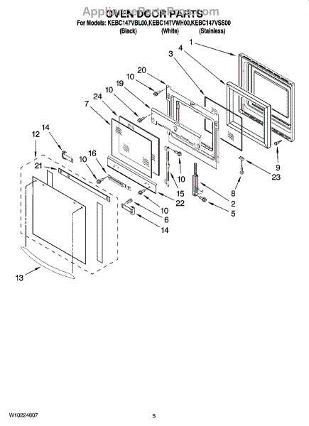 Parts for Kitchenaid KEBC147VSS00: 04 - Oven Door Parts