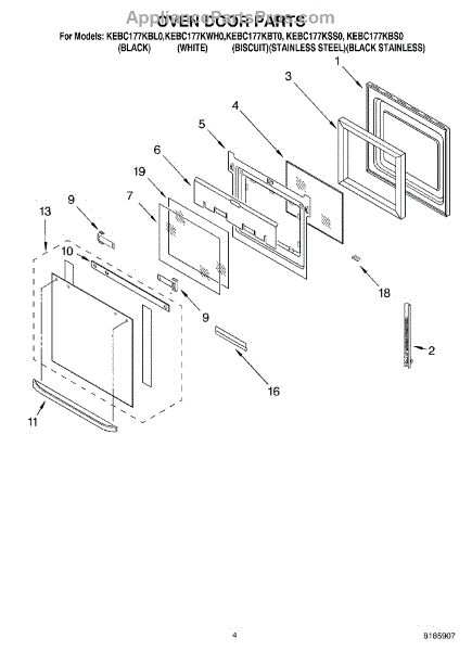 Parts for Kitchenaid KEBC177KBL0: 03 - Oven Door Parts