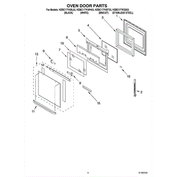 Parts for Kitchenaid KEBC177KWH03: 03 - Oven Door Parts