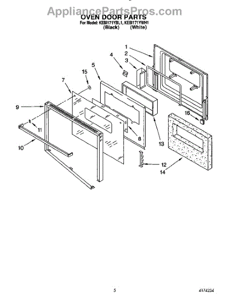 Parts for Kitchenaid KEBI171YBL1: 04 - Oven Door Parts