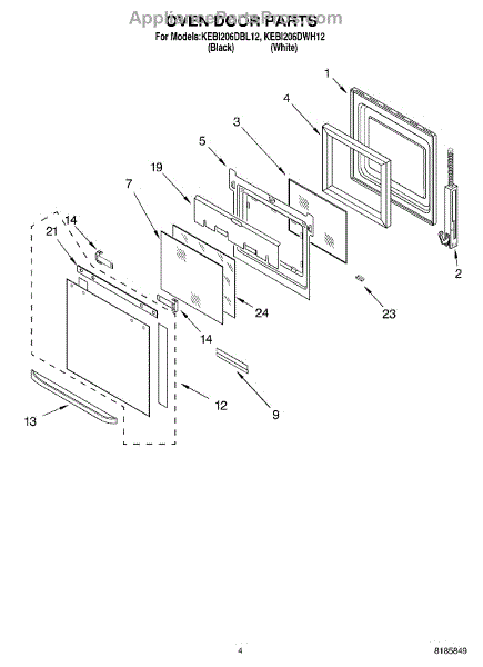 Parts for Kitchenaid KEBI206DBL12: 03 - Oven Door Parts