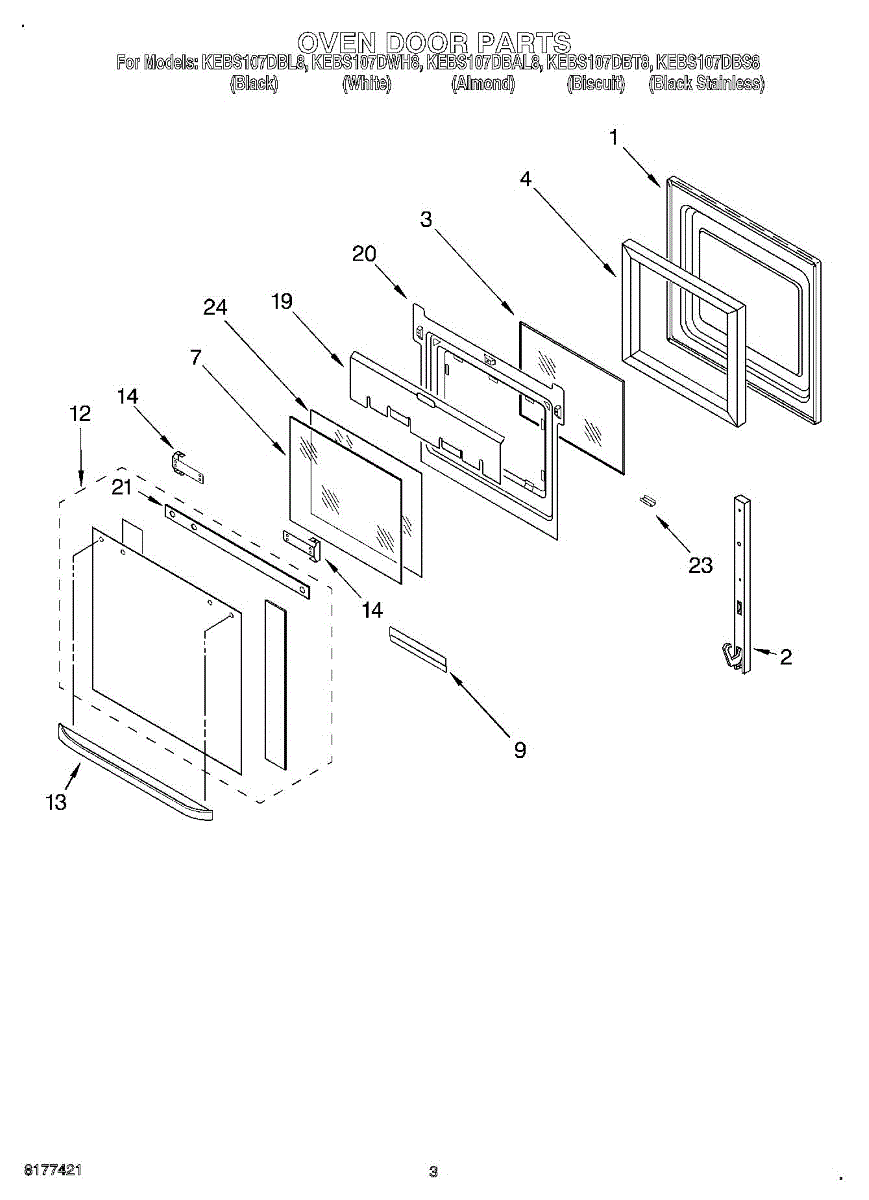 Replacement glass panel for oven doors. Installs as inner or outer pane. Order when cracked, shattered, or broken. Maintains safe viewing window.