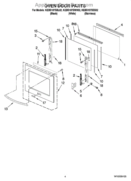 Parts for Kitchenaid KEBS107SWH02: 03 - Oven Door Parts