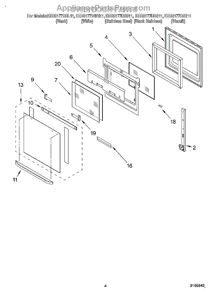 Parts for Kitchenaid KEBS177DBS11: 03 - Oven Door Parts