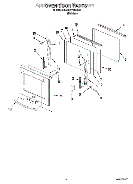 Parts for Kitchenaid KEBS277SSS03: 03 - Oven Door Parts