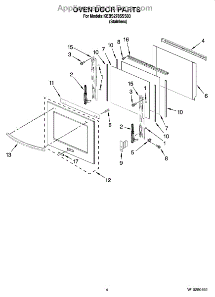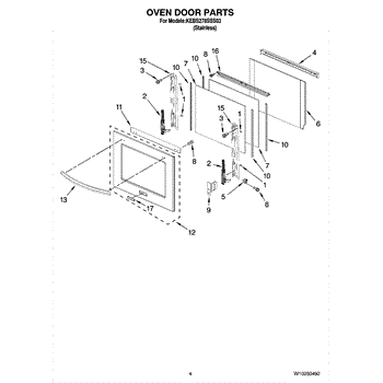Parts for Kitchenaid KEBS278SSS03: 03 - Oven Door Parts