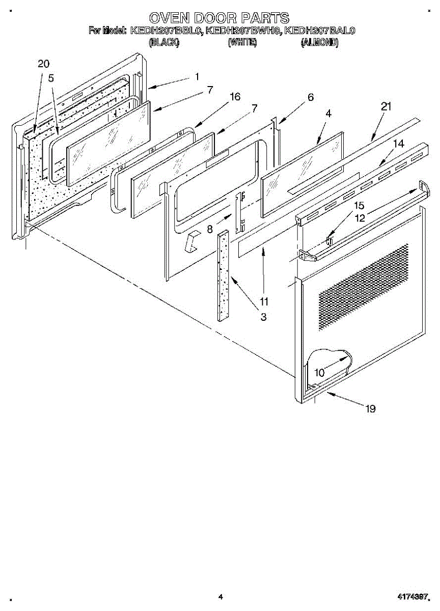 Parts for Kitchenaid KEDH207BAL0: 03 - Oven Door, Literature Parts