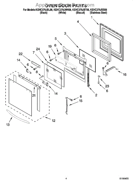 Parts for Kitchenaid KEHC379JBL08: 03 - Oven Door Parts