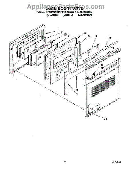 Parts for Kitchenaid KEMS306XBL5: 08 - Oven Door Parts