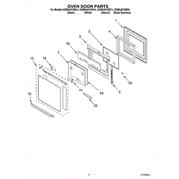 Parts for Kitchenaid KEMS307GBL4: 03 - Oven Door Parts