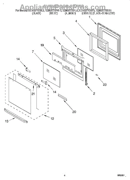 Parts for Kitchenaid KEMS377DBT6: 03 - Oven Door Parts
