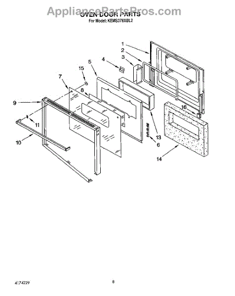 Parts for Kitchenaid KEMS378XBL2: 05 - Oven Door Parts