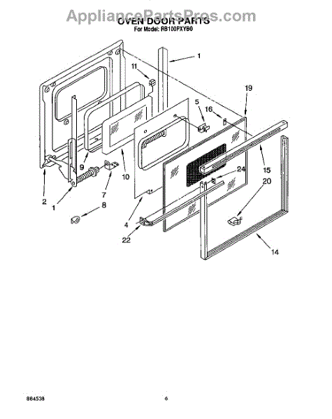 Parts for Whirlpool RB100PXYB0: 04 - Oven Door Parts