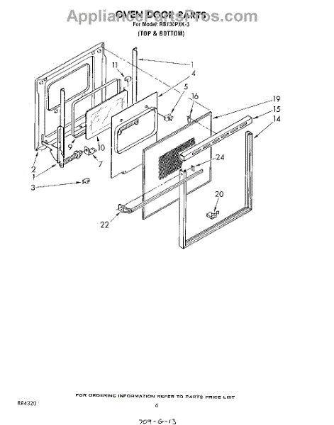 Parts for Whirlpool RB130PXK3: 05 - Oven Door Parts
