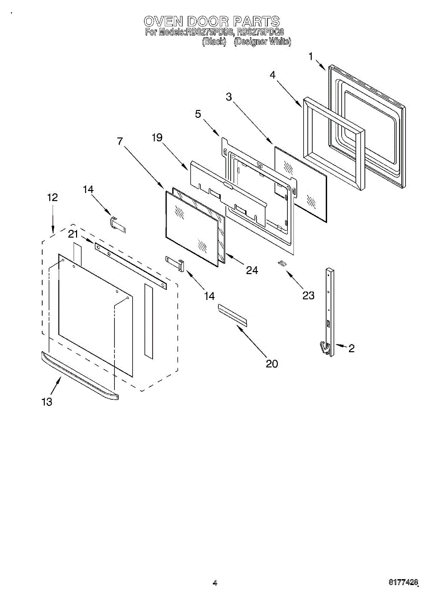 This oven door hinge is used on the black and designer white models. Two are used per oven.