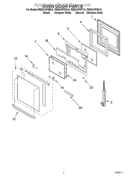 Parts for Whirlpool RBS275PDT16: 03 - Oven Door Parts