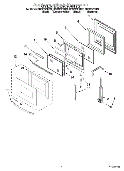 Parts for Whirlpool RBS275PRT02: 03 - Oven Door Parts