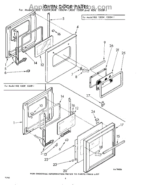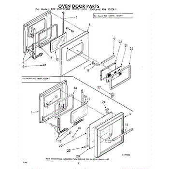 Parts for Whirlpool RDE1300W1: 04 - Oven Door Parts