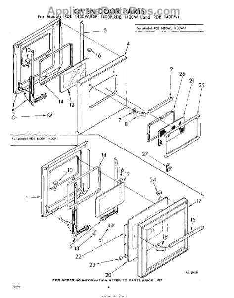 Parts for Whirlpool RDE1400W1: 04 - Oven Door Parts