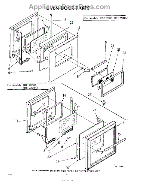 Parts for Whirlpool RDE2300W1: 04 - Oven Door Parts