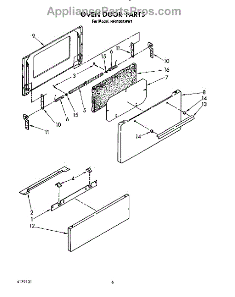 Parts for Whirlpool RF0100XRW1: 05 - Oven Door Parts