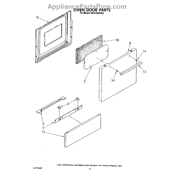 Parts for Whirlpool RF0100XRW2: 05 - Oven Door Parts