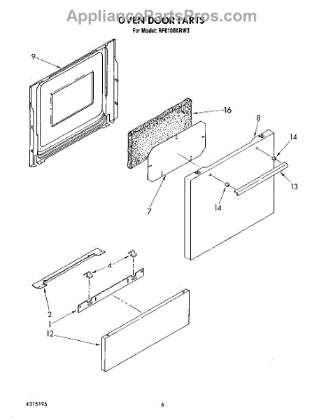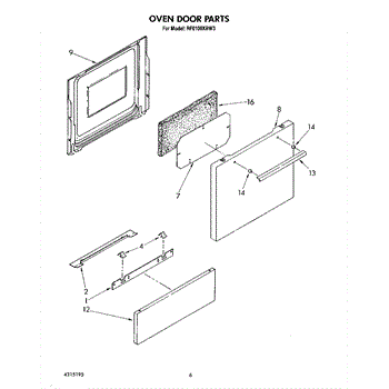 Parts for Whirlpool RF0100XRW3: 05 - Oven Door Parts